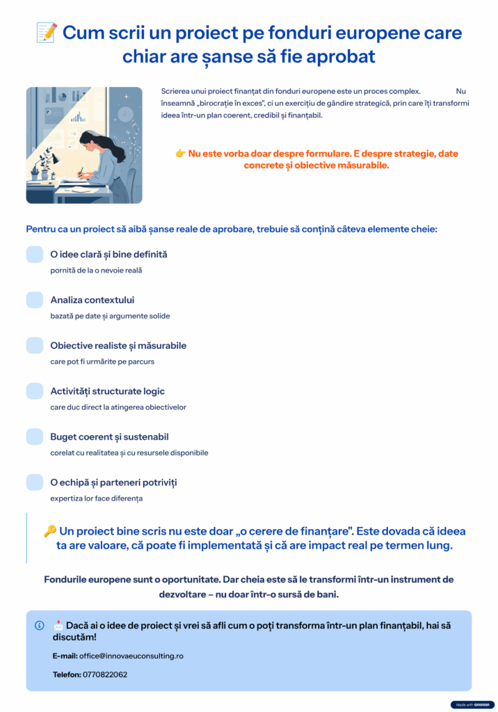 Cum scrii un proiect pe fonduri europene care chiar are sanse sa fie aprobatde adminDiverse Etichete:Finantarenerambursabil Lasă un răspuns Anulează răspunsulAdresa ta de email nu va fi publicată. Câmpurile obligatorii sunt marcate cu *Nume * Email * Site web Comentariu * Salvează-mi numele, emailul și site-ul web în acest navigator pentru data viitoare când o să comentez.