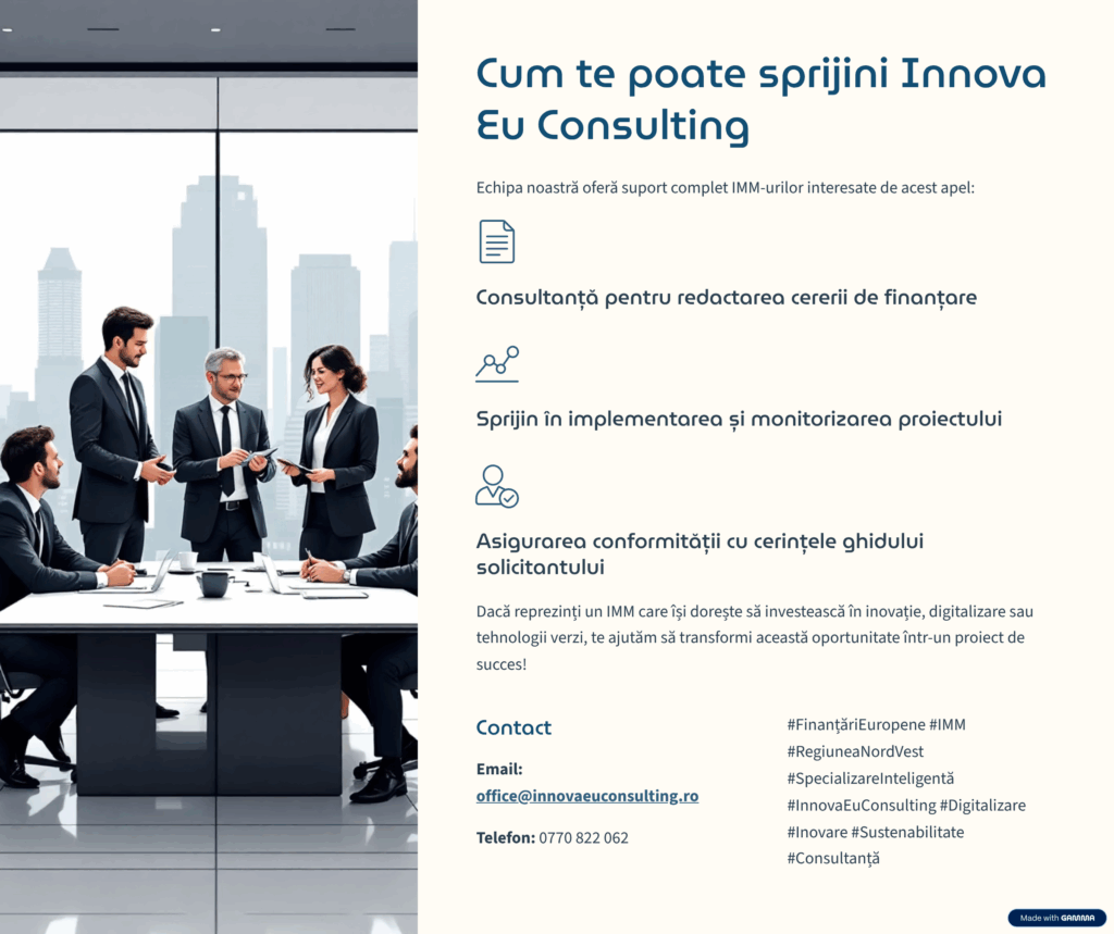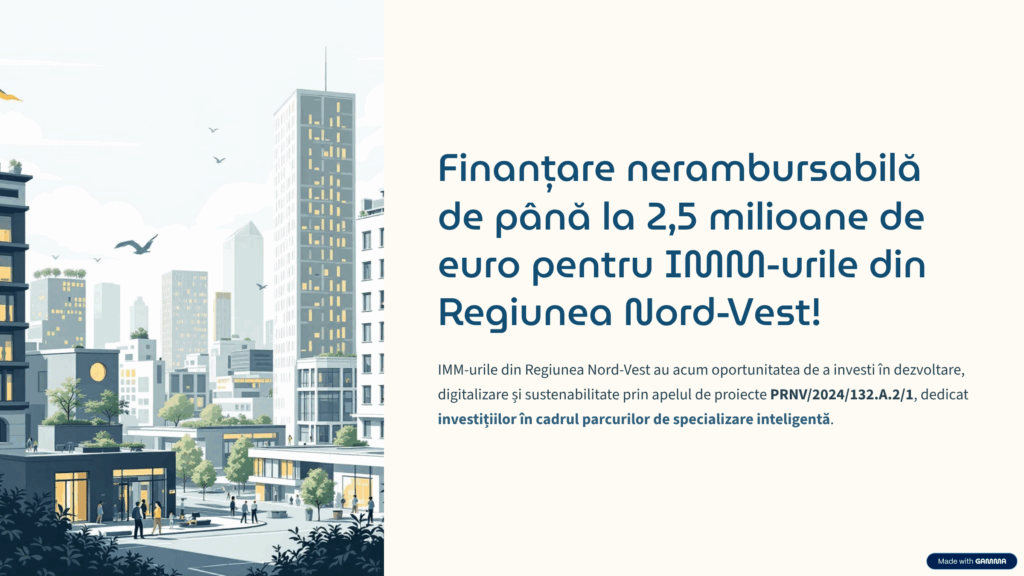 Finantare nerambursabila de pana la 25 milioane de euro pentru IMM-urile din Regiunea Nord-Vestde adminIMM Etichete:FinantareIMMnerambursabil Lasă un răspuns Anulează răspunsulAdresa ta de email nu va fi publicată. Câmpurile obligatorii sunt marcate cu *Nume * Email * Site web Comentariu * Salvează-mi numele, emailul și site-ul web în acest navigator pentru data viitoare când o să comentez.
